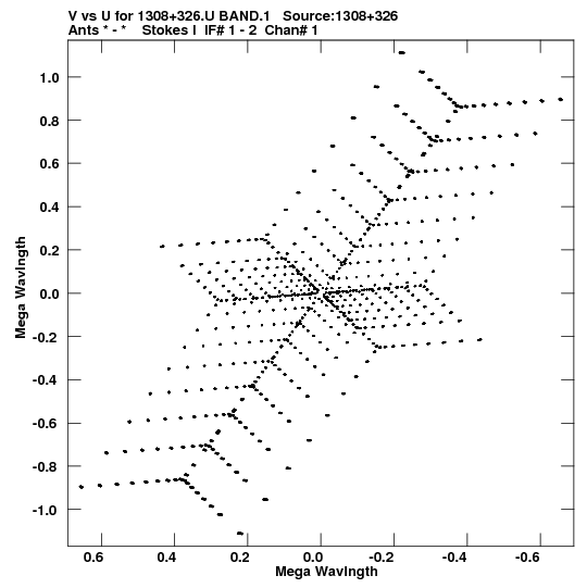 • Links is a collection of links that will show you the GIF uv-coverage and visibility plot for this data set in pop-up windows. See the README file on how to interpret these plots. They'll also get you to the project pipelining scripts and information log files as well as the full multi-source archive data on this project.