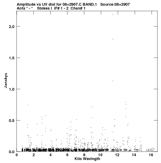 angle, the approximate noise level in prefixed units of Jansky, and a