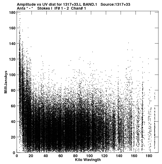 angle, the approximate noise level in prefixed units of Jansky, and a