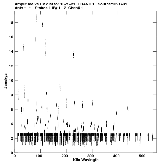angle, the approximate noise level in prefixed units of Jansky, and a