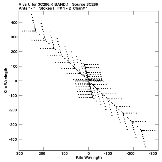 • Links is a collection of links that will show you the GIF uv-coverage and visibility plot for this data set in pop-up windows. See the README file on how to interpret these plots. They'll also get you to the project pipelining scripts and information log files as well as the full multi-source archive data on this project.