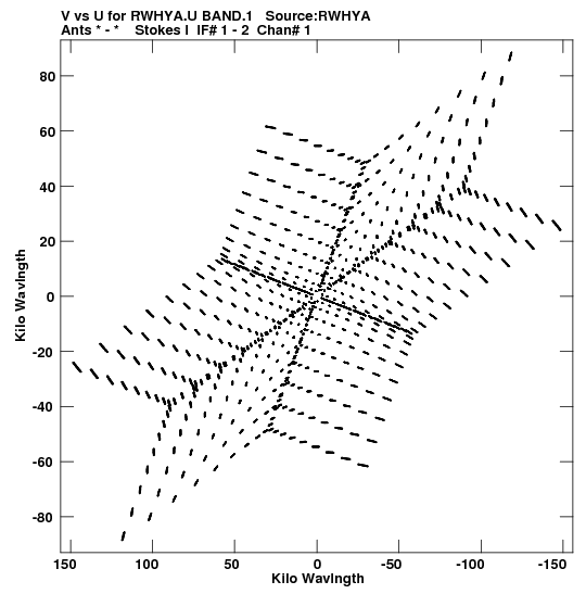 • Links is a collection of links that will show you the GIF uv-coverage and visibility plot for this data set in pop-up windows. See the README file on how to interpret these plots. They'll also get you to the project pipelining scripts and information log files as well as the full multi-source archive data on this project.