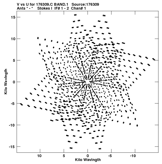 • Links is a collection of links that will show you the GIF uv-coverage and visibility plot for this data set in pop-up windows. See the README file on how to interpret these plots. They'll also get you to the project pipelining scripts and information log files as well as the full multi-source archive data on this project.