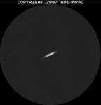 • JPEG shows a thumbnail of the pipeline image. Clicking it will show you a larger version in the browser. Both JPEG images have a square transfer function to emphasize the lower levels a bit more; do not use the JPEGs for scientific purposes (see next). As a guideline, the lighter a thumbnail, the less difference between the peak flux density and the rms noise level, i.e., don't expect to see too much in in light gray images, especially if the rms noise given in the next column is in the order of microJy or less. On the other hand, dark images have a strong source in there somewhere.. (try looking in the center of the image).