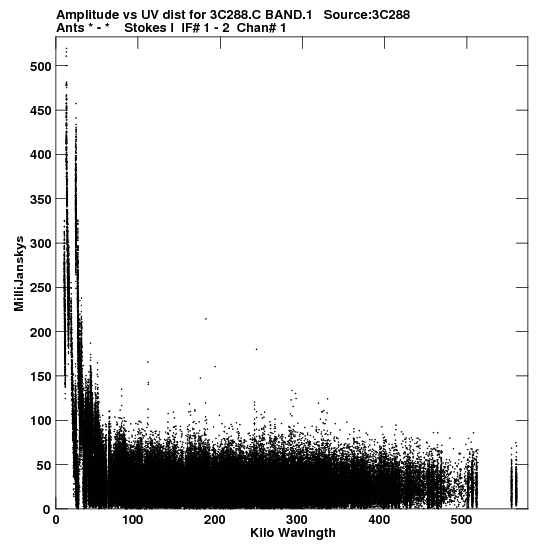 angle, the approximate noise level in prefixed units of Jansky, and a