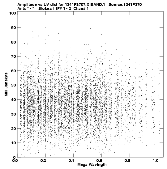 angle, the approximate noise level in prefixed units of Jansky, and a