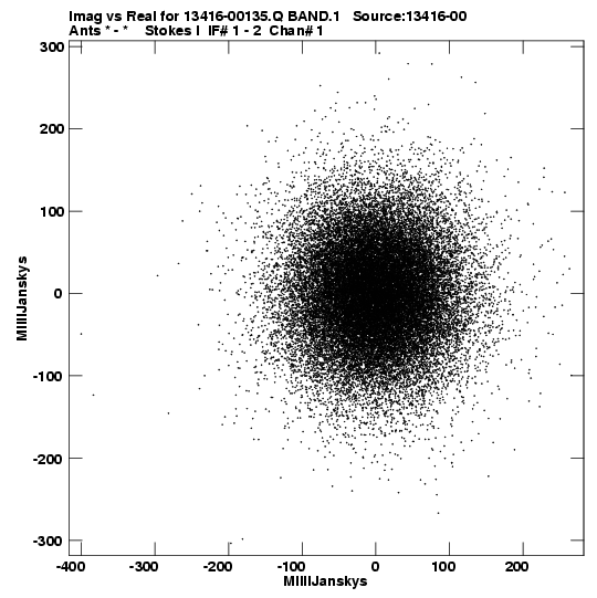 angle, the approximate noise level in prefixed units of Jansky, and a