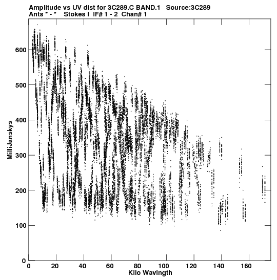 angle, the approximate noise level in prefixed units of Jansky, and a