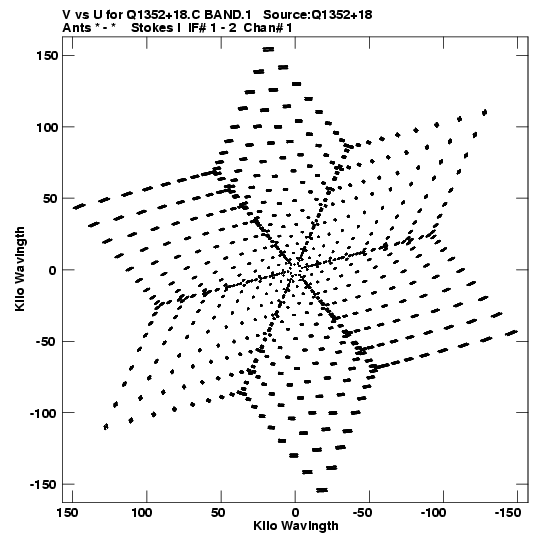 • Links is a collection of links that will show you the GIF uv-coverage and visibility plot for this data set in pop-up windows. See the README file on how to interpret these plots. They'll also get you to the project pipelining scripts and information log files as well as the full multi-source archive data on this project.