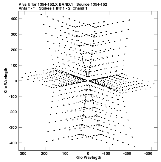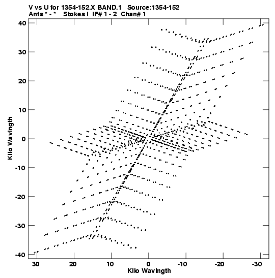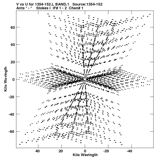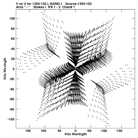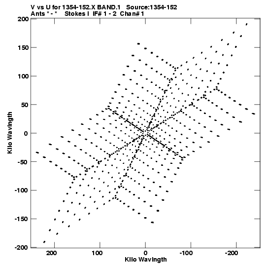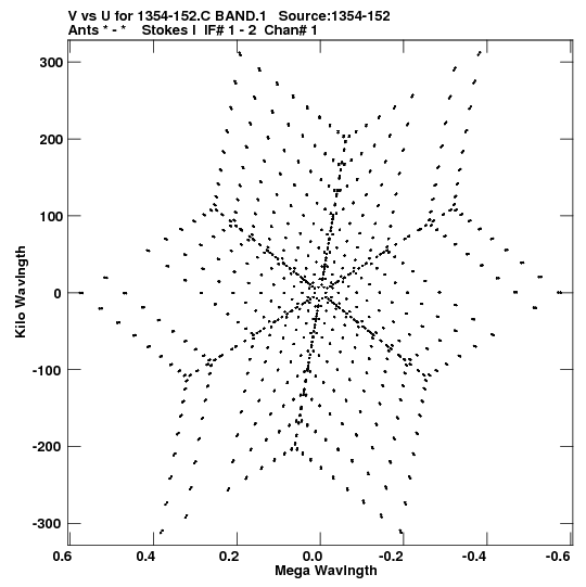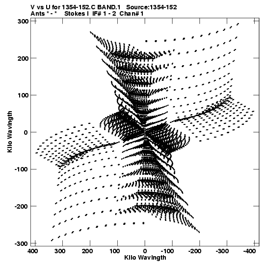• Links is a collection of links that will show you the GIF uv-coverage and visibility plot for this data set in pop-up windows. See the README file on how to interpret these plots. They'll also get you to the project pipelining scripts and information log files as well as the full multi-source archive data on this project.