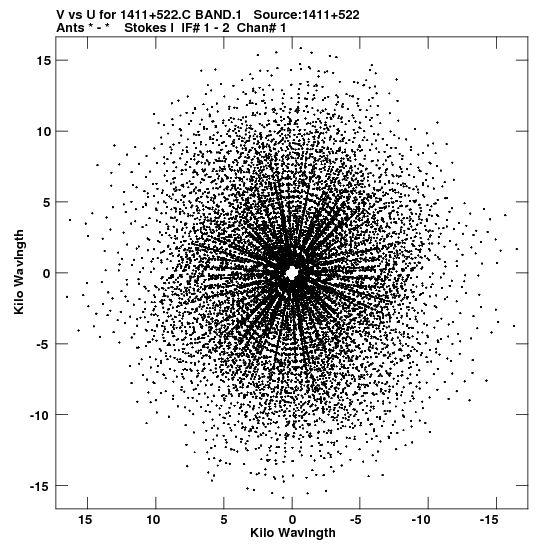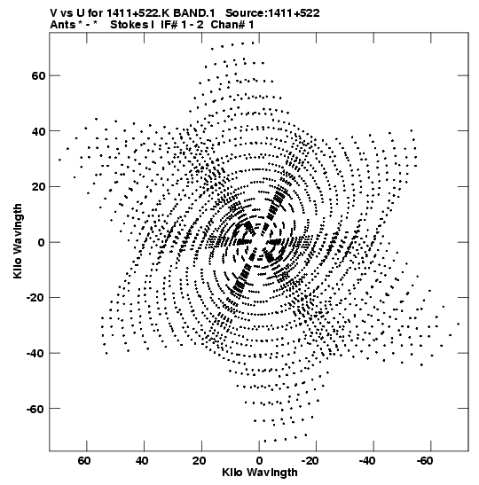• Links is a collection of links that will show you the GIF uv-coverage and visibility plot for this data set in pop-up windows. See the README file on how to interpret these plots. They'll also get you to the project pipelining scripts and information log files as well as the full multi-source archive data on this project.