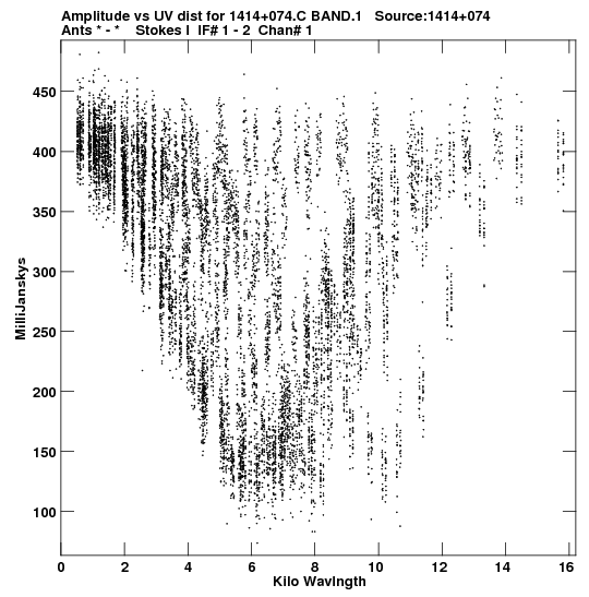 angle, the approximate noise level in prefixed units of Jansky, and a