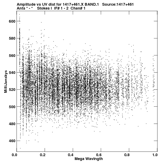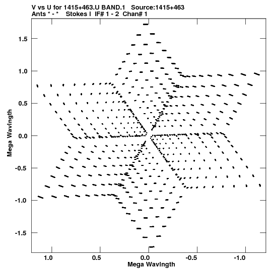 • Links is a collection of links that will show you the GIF uv-coverage and visibility plot for this data set in pop-up windows. See the README file on how to interpret these plots. They'll also get you to the project pipelining scripts and information log files as well as the full multi-source archive data on this project.