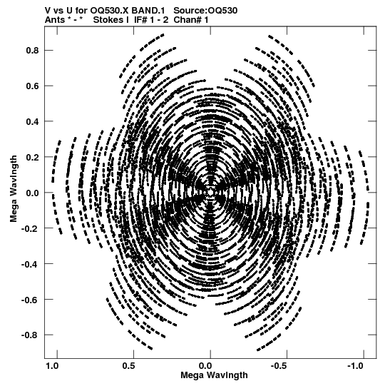 angle, the approximate noise level in prefixed units of Jansky, and a