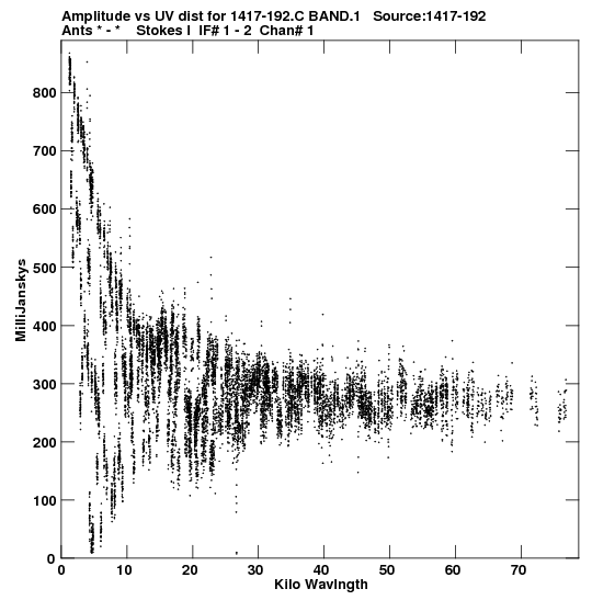 angle, the approximate noise level in prefixed units of Jansky, and a