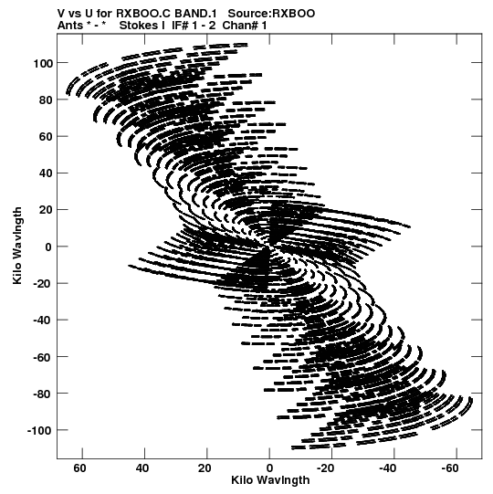 angle, the approximate noise level in prefixed units of Jansky, and a