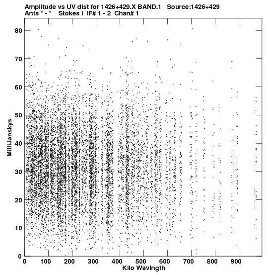 angle, the approximate noise level in prefixed units of Jansky, and a