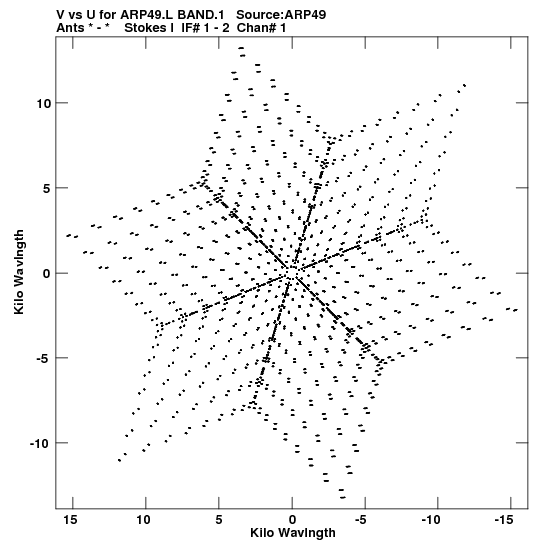 • Links is a collection of links that will show you the GIF uv-coverage and visibility plot for this data set in pop-up windows. See the README file on how to interpret these plots. They'll also get you to the project pipelining scripts and information log files as well as the full multi-source archive data on this project.