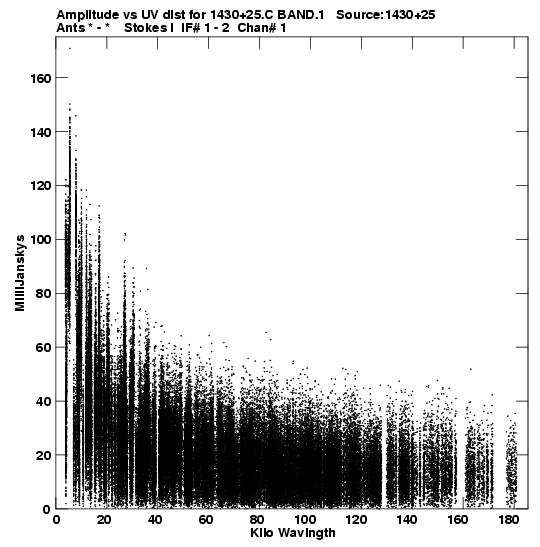 angle, the approximate noise level in prefixed units of Jansky, and a