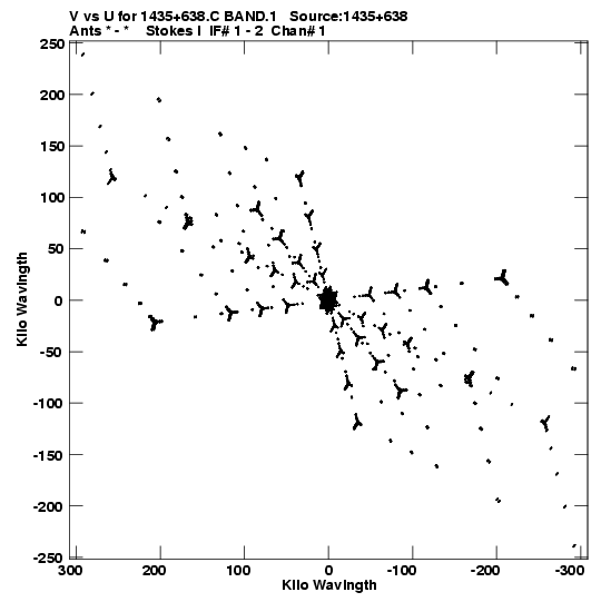 • Links is a collection of links that will show you the GIF uv-coverage and visibility plot for this data set in pop-up windows. See the README file on how to interpret these plots. They'll also get you to the project pipelining scripts and information log files as well as the full multi-source archive data on this project.