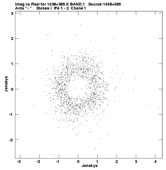 angle, the approximate noise level in prefixed units of Jansky, and a
