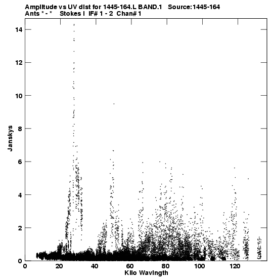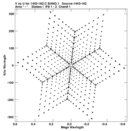 • Links is a collection of links that will show you the GIF uv-coverage and visibility plot for this data set in pop-up windows. See the README file on how to interpret these plots. They'll also get you to the project pipelining scripts and information log files as well as the full multi-source archive data on this project.
