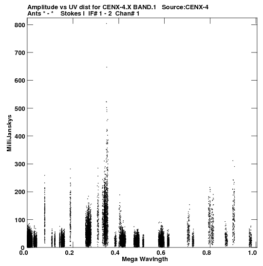 • Links is a collection of links that will show you the GIF uv-coverage and visibility plot for this data set in pop-up windows. See the README file on how to interpret these plots. They'll also get you to the project pipelining scripts and information log files as well as the full multi-source archive data on this project.