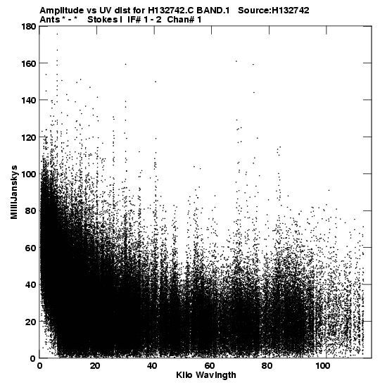 angle, the approximate noise level in prefixed units of Jansky, and a