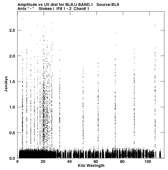 angle, the approximate noise level in prefixed units of Jansky, and a