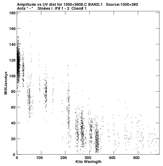 angle, the approximate noise level in prefixed units of Jansky, and a