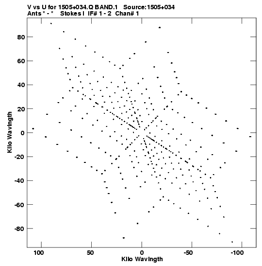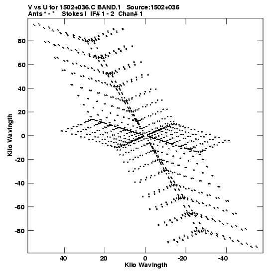 • Links is a collection of links that will show you the GIF uv-coverage and visibility plot for this data set in pop-up windows. See the README file on how to interpret these plots. They'll also get you to the project pipelining scripts and information log files as well as the full multi-source archive data on this project.