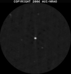 • JPEG shows a thumbnail of the pipeline image. Clicking it will show you a larger version in the browser. Both JPEG images have a square transfer function to emphasize the lower levels a bit more; do not use the JPEGs for scientific purposes (see next). As a guideline, the lighter a thumbnail, the less difference between the peak flux density and the rms noise level, i.e., don't expect to see too much in in light gray images, especially if the rms noise given in the next column is in the order of microJy or less. On the other hand, dark images have a strong source in there somewhere.. (try looking in the center of the image).
