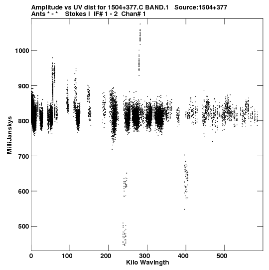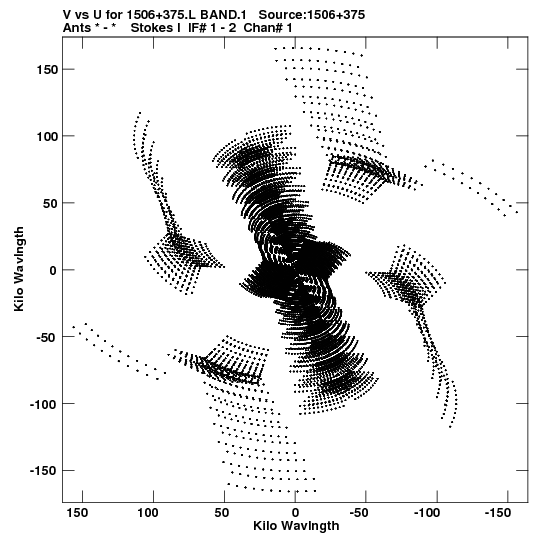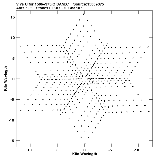 • Links is a collection of links that will show you the GIF uv-coverage and visibility plot for this data set in pop-up windows. See the README file on how to interpret these plots. They'll also get you to the project pipelining scripts and information log files as well as the full multi-source archive data on this project.