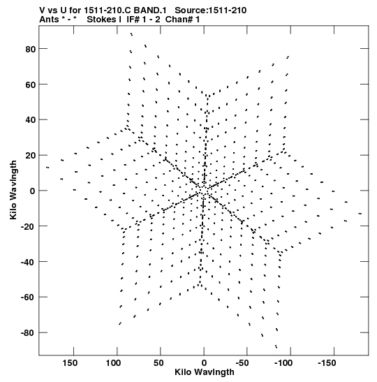 • Links is a collection of links that will show you the GIF uv-coverage and visibility plot for this data set in pop-up windows. See the README file on how to interpret these plots. They'll also get you to the project pipelining scripts and information log files as well as the full multi-source archive data on this project.
