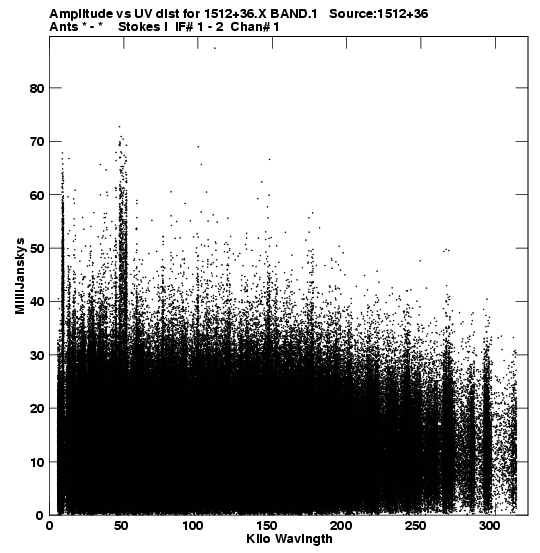 • Links is a collection of links that will show you the GIF uv-coverage and visibility plot for this data set in pop-up windows. See the README file on how to interpret these plots. They'll also get you to the project pipelining scripts and information log files as well as the full multi-source archive data on this project.