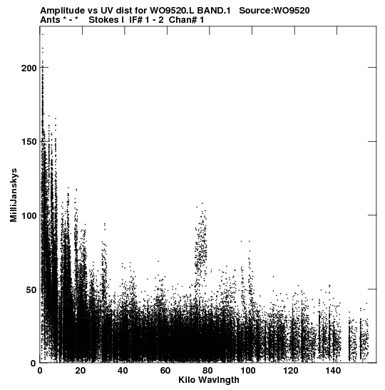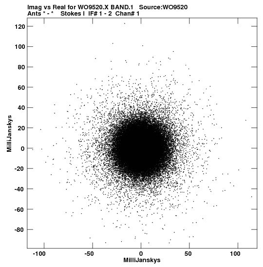 angle, the approximate noise level in prefixed units of Jansky, and a