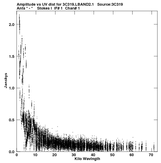 angle, the approximate noise level in prefixed units of Jansky, and a