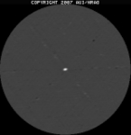 • JPEG shows a thumbnail of the pipeline image. Clicking it will show you a larger version in the browser. Both JPEG images have a square transfer function to emphasize the lower levels a bit more; do not use the JPEGs for scientific purposes (see next). As a guideline, the lighter a thumbnail, the less difference between the peak flux density and the rms noise level, i.e., don't expect to see too much in in light gray images, especially if the rms noise given in the next column is in the order of microJy or less. On the other hand, dark images have a strong source in there somewhere.. (try looking in the center of the image).