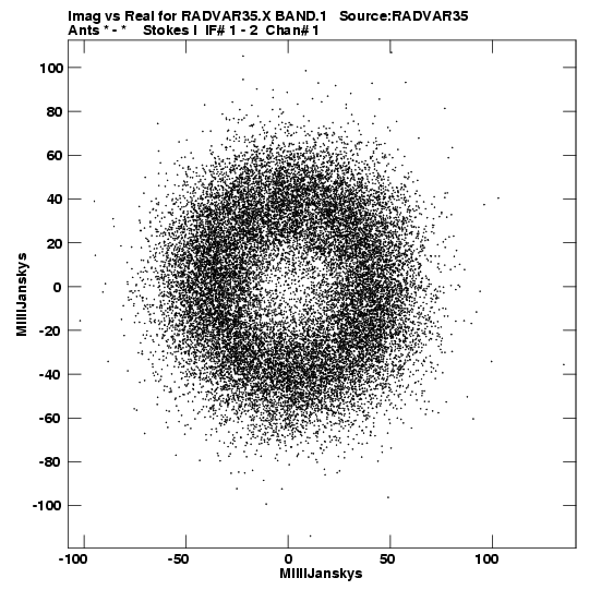 angle, the approximate noise level in prefixed units of Jansky, and a