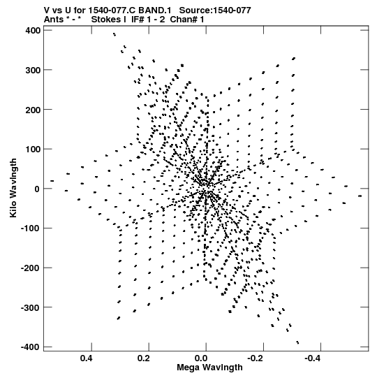 • Links is a collection of links that will show you the GIF uv-coverage and visibility plot for this data set in pop-up windows. See the README file on how to interpret these plots. They'll also get you to the project pipelining scripts and information log files as well as the full multi-source archive data on this project.