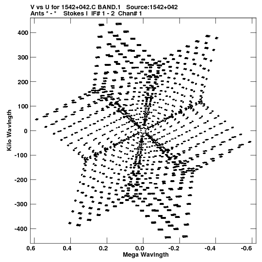 • Links is a collection of links that will show you the GIF uv-coverage and visibility plot for this data set in pop-up windows. See the README file on how to interpret these plots. They'll also get you to the project pipelining scripts and information log files as well as the full multi-source archive data on this project.