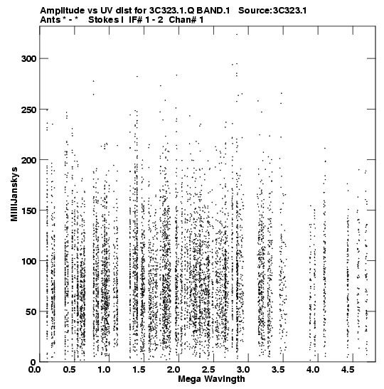 angle, the approximate noise level in prefixed units of Jansky, and a