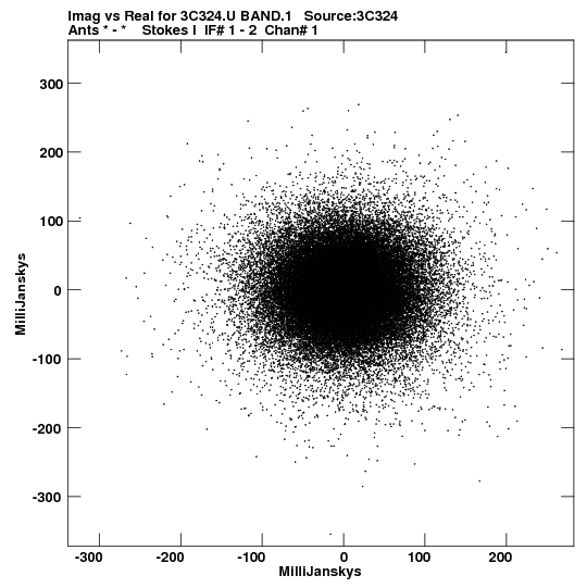 angle, the approximate noise level in prefixed units of Jansky, and a