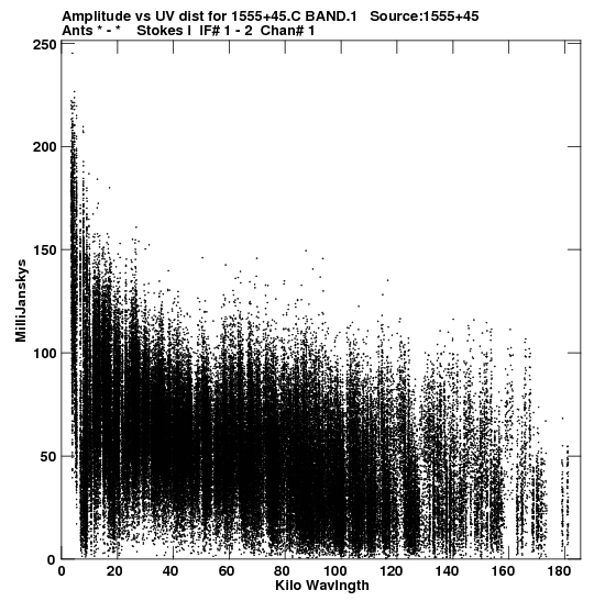 the calibrated single source uv FITS file and it's size (in red).