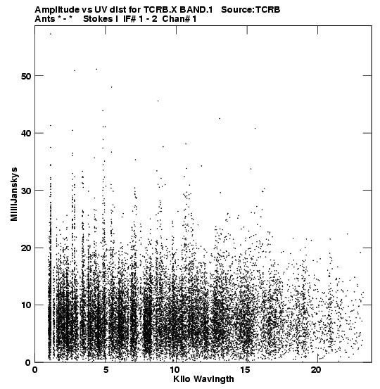 the calibrated single source uv FITS file and it's size (in red).