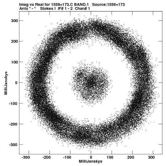 angle, the approximate noise level in prefixed units of Jansky, and a