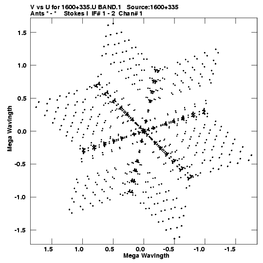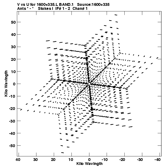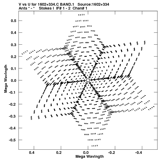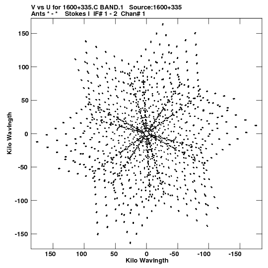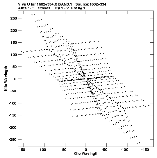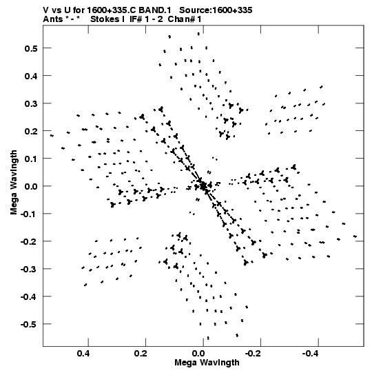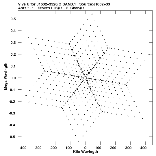 • Links is a collection of links that will show you the GIF uv-coverage and visibility plot for this data set in pop-up windows. See the README file on how to interpret these plots. They'll also get you to the project pipelining scripts and information log files as well as the full multi-source archive data on this project.