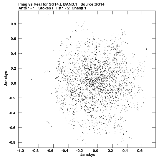 angle, the approximate noise level in prefixed units of Jansky, and a