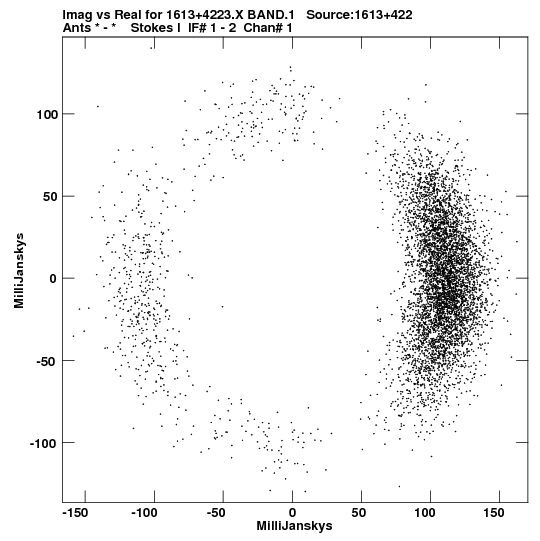 • Links is a collection of links that will show you the GIF uv-coverage and visibility plot for this data set in pop-up windows. See the README file on how to interpret these plots. They'll also get you to the project pipelining scripts and information log files as well as the full multi-source archive data on this project.