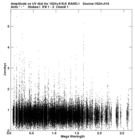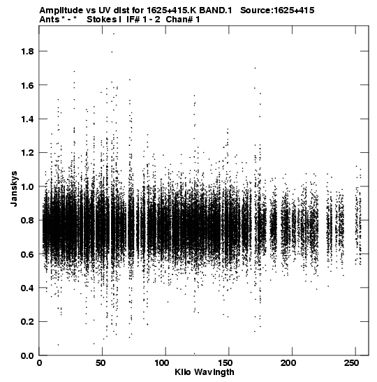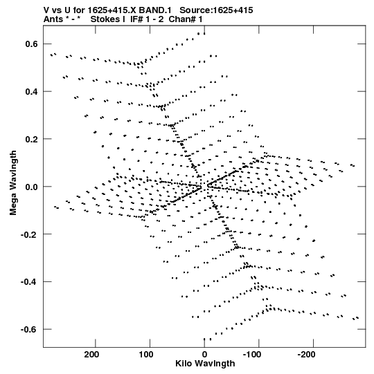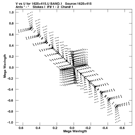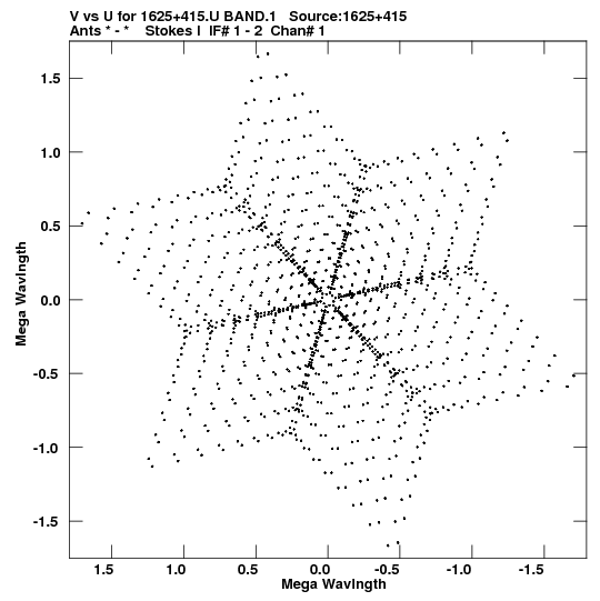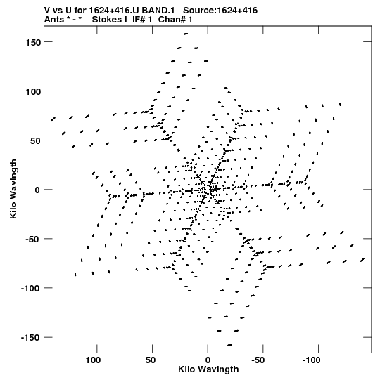 • Links is a collection of links that will show you the GIF uv-coverage and visibility plot for this data set in pop-up windows. See the README file on how to interpret these plots. They'll also get you to the project pipelining scripts and information log files as well as the full multi-source archive data on this project.